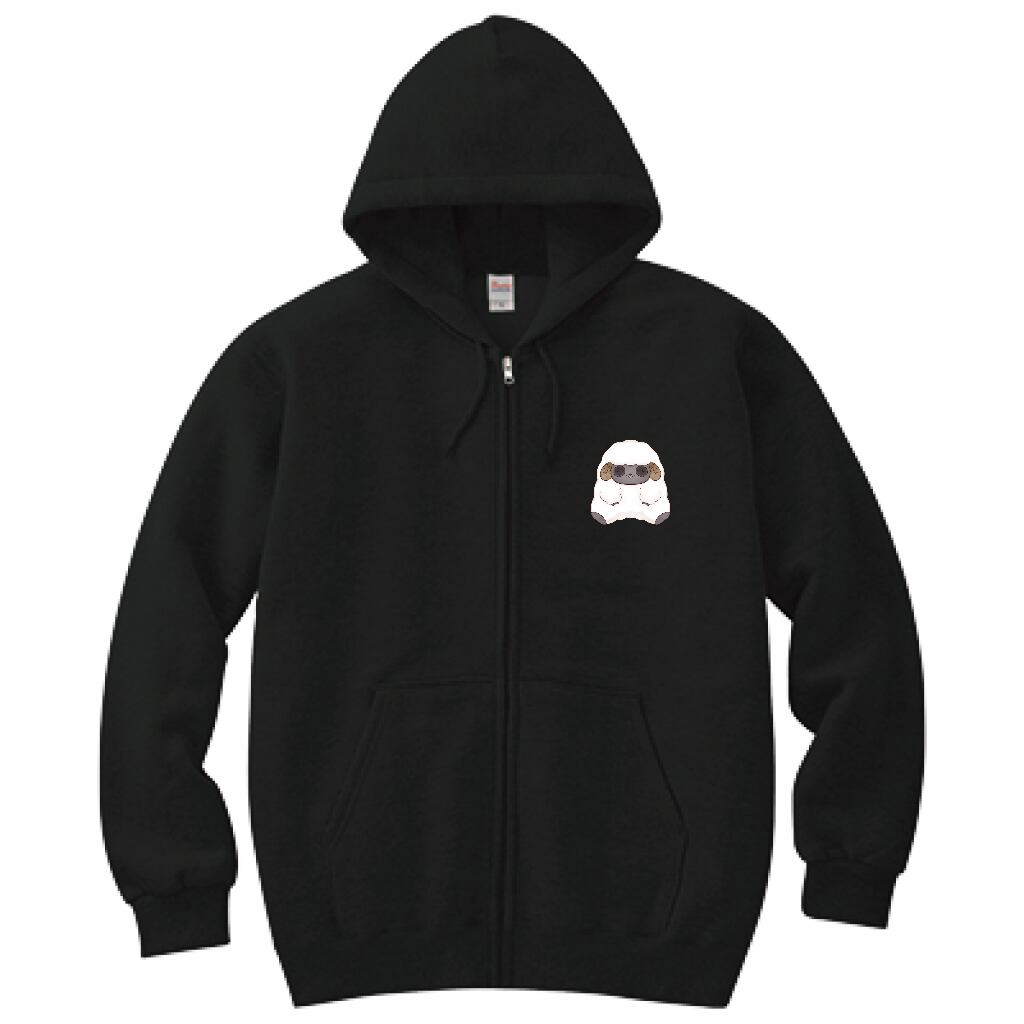 キーホルダーにもなったぬいぐるみ版ひつじのイラストが胸部に可愛く印刷されたパーカーが登場!フルジップなので手軽に羽織る使い方も◎